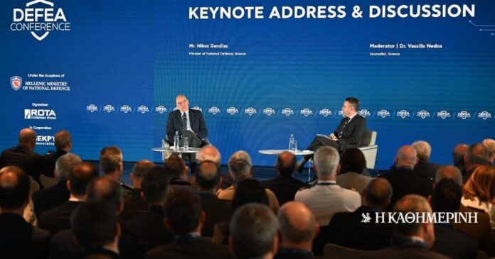 Στο μέλλον των ελληνικών Ενόπλων Δυνάμεων, στην ανάπτυξη της Αμυντικής Βιομηχανίας και της Καινοτομίας, στο νέο γεωπολιτικό σκηνικό αλλά και στην Ατζέντα 2030 αναφέρθηκε ο υπουργός Εθνικής Αμυνας Νίκος Δένδιας, κατά τη συζήτησή του με τον δημοσιογράφο της «Κ», Βασίλη Νέδο, στην έναρξη του Συνεδρίου DEFEA Conference – Current Strategies for a Challenging World που πραγματοποιείται στο Κέντρο Πολιτισμού Ιδρυμα Σταύρος Νιάρχος.