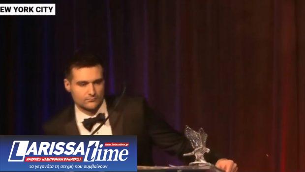 Ο 27χρονος βρισκόταν στη μέση της ομιλίας του στην 112η ετήσια γιορτή των Νέων Ρεπουμπλικάνων της Νέας Υόρκης, μαζί με ισχυρούς παράγοντες του Trumpworld όπως οι Steve Bannon και Dan Scavino, όταν ξαφνικά έπεσε μπροστά από το βήμα.