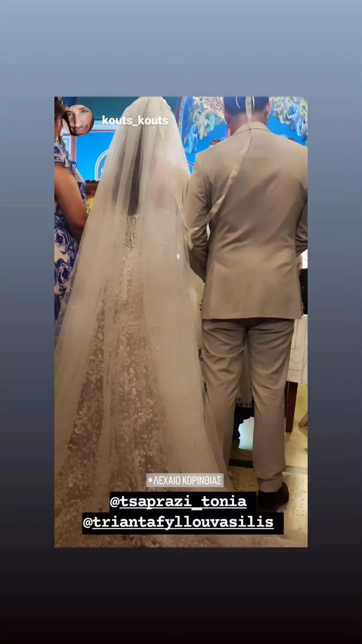 Η διακόσμηση της δεξίωσης ήταν λιτή αλλά κομψή, ενώ το γλέντι κράτησε μέχρι τις πρώτες πρωινές ώρες. Η νύφη, Τόνια Τσαπράζη, δεν δίστασε να ανέβει στα τραπέζια και να χορέψει με τους καλεσμένους, προσθέτοντας μια δόση αυθορμητισμού και χαράς στη βραδιά.