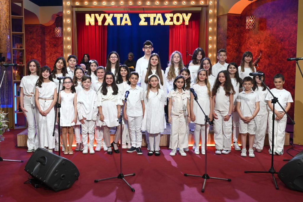 Η Παιδική Χορωδία του Σπύρου Λάμπρου ερμηνεύει τρυφερά το τραγούδι του Απόστολου Καλδάρα «Νύχτωσε χωρίς φεγγάρι» και δίνει το δικό της στίγμα στη βραδιά «ανοίγοντάς» την.