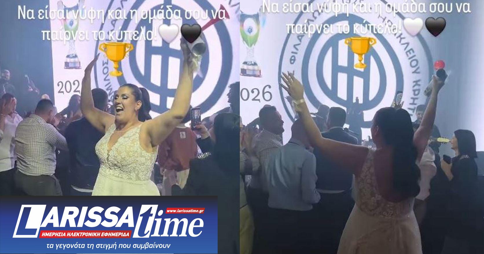 Μία τρομερή νύφη στο Ηράκλειο, η οποία παντρεύτηκε τον αγαπημένο της το Σάββατο, γιόρτασε με την ψυχή της τη νίκη της ομάδας της, την ώρα της δεξίωσης του γάμου της.