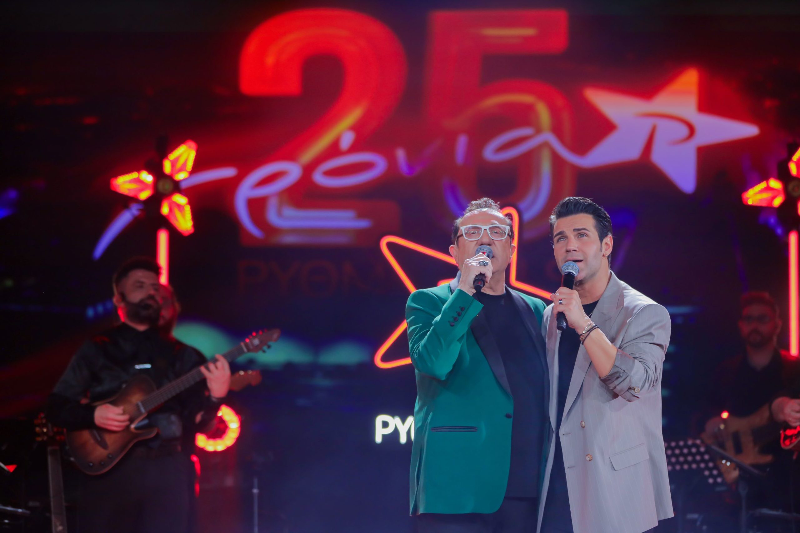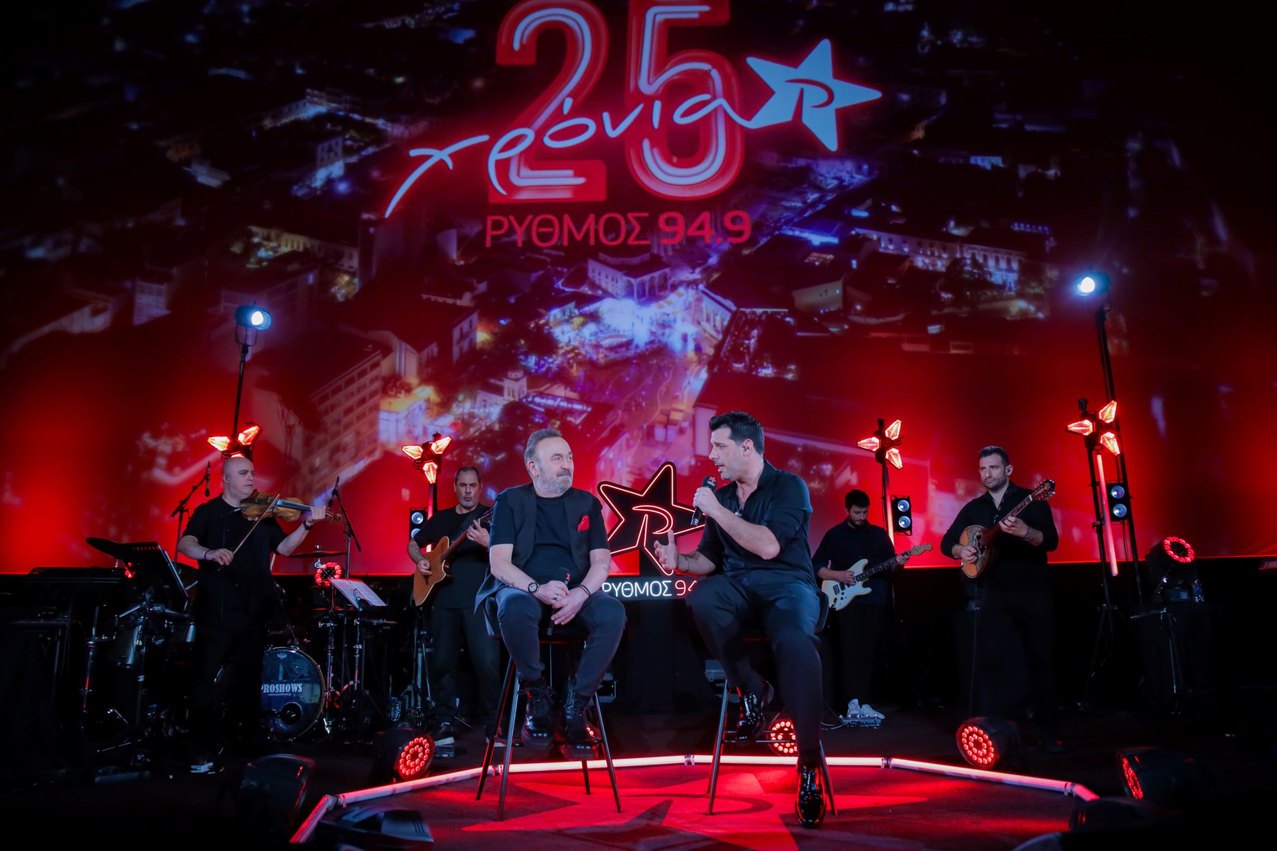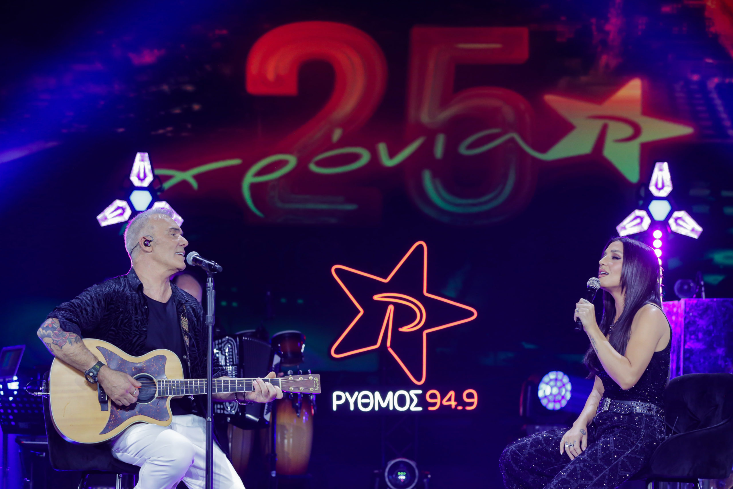 Οι δύο καλλιτέχνες ένωσαν τις φωνές τους στο 18ο Exclusive Live Event του ΡΥΘΜΟΥ 94.9 «Πέφτει η νύχτα με… ΡΥΘΜΟ», που πραγματοποιήθηκε στη βραβευμένη αίθουσα Vmax Sphera των Village Cinemas στο The Mall Athens με παρουσιάστρια τη ραδιοφωνική παραγωγό Γιώτα Τσιμπρικίδου.