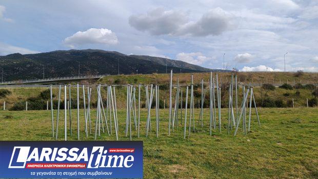 Το έργο αποτελούνταν από 58 μεταλλικούς σωλήνες ύψους 2-2,5 μέτρων που άγνωστοι τους «ξήλωσαν». Ο Γ. Κόφτης, σε πρόσφατη επίσκεψή του στο σημείο, για να κάνει συντήρηση, αντίκρισε ελάχιστους μεταλλικούς σωλήνες πεταμένους με τη στεναχώρια του από θέαμα να μην κρύβεται.
