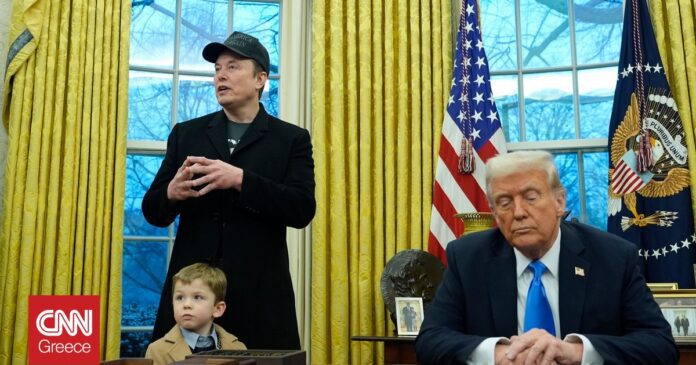 Μέσα στο Οβάλ Γραφείο, δίπλα στον Ντόναλντ Τραμπ, βρέθηκε ο Ίλον Μασκ, μαζί με τον γιό του, με σκοπό να παραστεί στην υπογραφή διατάγματος που, με εντολή προέδρου υποχρεώνει τις ομοσπονδιακές υπηρεσίες να συνεργάζονται με την επιτροπή της οποίας προίσταται ο Μασκ, στις προσπάθειές του για περικοπές δαπανών.