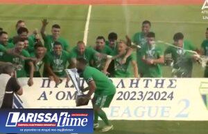 Οι παίκτες του Σωκράτη Οφρυδόπουλου μετά το φινάλε του ματς πανηγύρισαν έξαλλα τον τίτλο και την άνοδο, υψώνοντας στον ουρανό το τρόπαιο του πρωταθλητή.