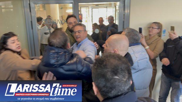 Η ατμόσφαιρα στο κτίριο της Περιφέρειας Θεσσαλίας ξέφυγε εκτός ελέγχου για μικρό χρονικό διάστημα. Μέλη του συμβουλίου, μεταξύ αυτών ο περιφερειάρχης, Δημήτρης Κουρέτας και ο αντιπεριφερειάρχης υγείας, Βαγγέλης Αποστόλου, προσπάθησαν να ηρεμήσουν τα πνεύματα, ενώ δυνάμεις της αστυνομίας, που έσπευσαν στο σημείο, κατάφεραν να φυγαδεύσουν τον πρώην περιφερειάρχη από το κτίριο.