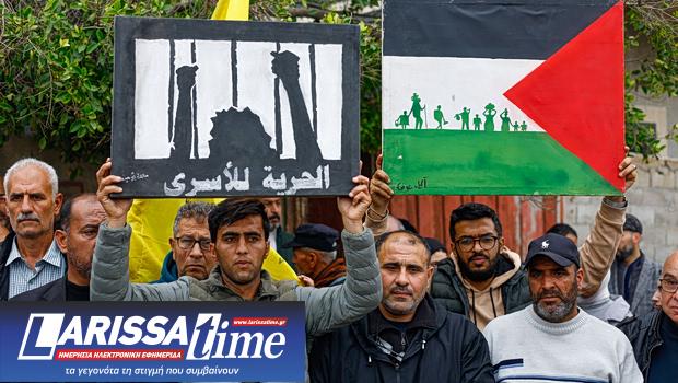 Παλαιστίνιοι συμμετέχουν σε διαδήλωση κατά της εφαρμογής του ισραηλινού νόμου περί θανατικής ποινής για Παλαιστίνιους που έχουν καταδικαστεί για θανατηφόρες επιθέσεις, στη Ραμάλα της κατεχόμενης από το Ισραήλ Δυτικής Όχθης, στις 31 Μαρτίου 2026. REUTERS/Mohammed Torokman