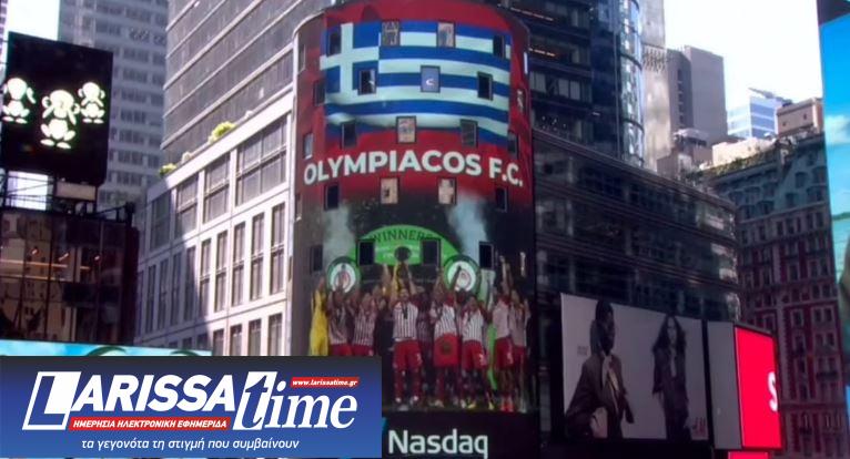 Ο Ολυμπιακός στον εμβληματικό πύργο του Nasdaq στην Times Square της Νέας Υόρκης