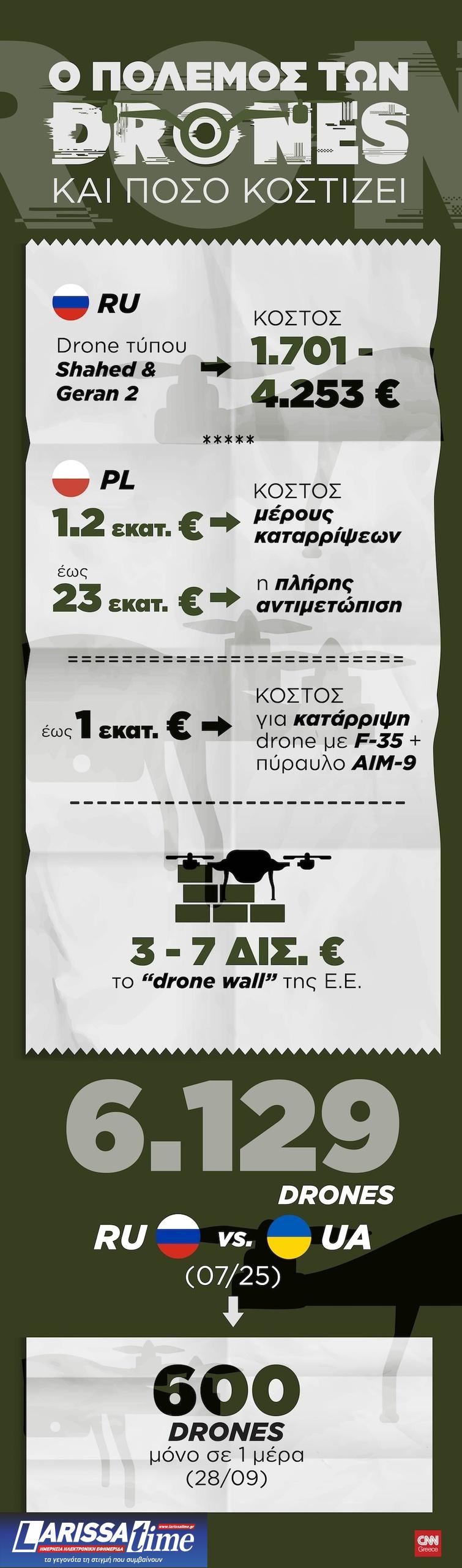 Επιπλέον, δημοσίευμα αναφέρει ότι η Πολωνία έχει δεχτεί «περίπου 25 drones», αλλά από αυτά μόνο μερικά καταρρίφθηκαν, και το κόστος αυτών των πυραύλων κυρίως αντιβαίνει στο ότι επιτίθεται κάτι πολύ φτηνότερο.