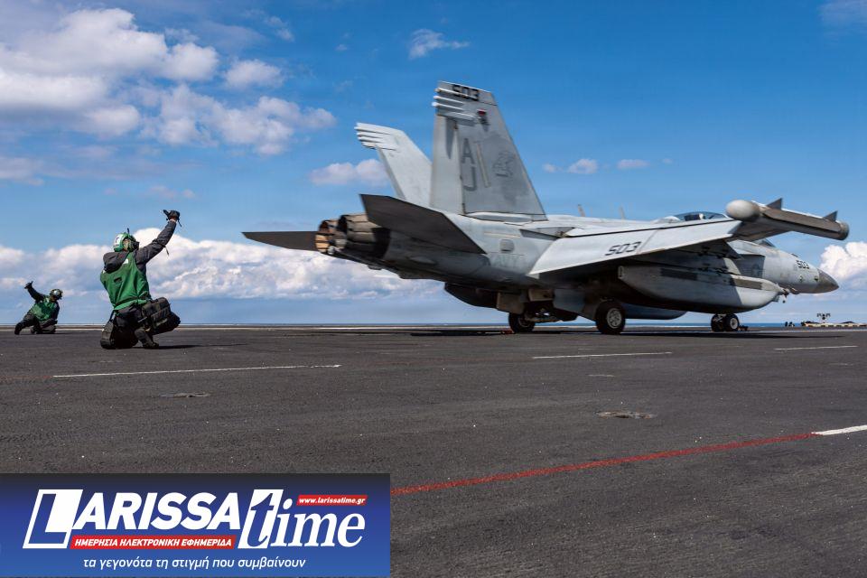 Ένα E/A-18G Growler του USS Gerald R. Ford απονηώνεται για την υποστήριξη της Επιχείρησης Epic Fury.