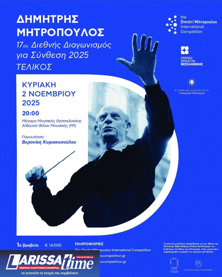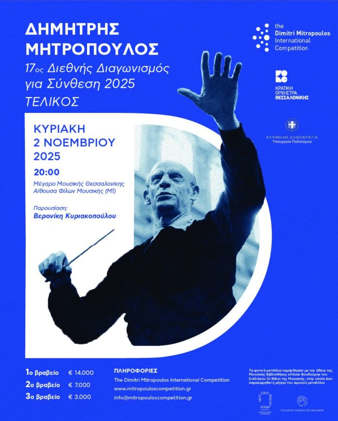 Η Κρατική Ορχήστρα Θεσσαλονίκης διοργανώνει τον 17ο Διεθνή Διαγωνισμό «Δημήτρης Μητρόπουλος», που φέτος αφορά στη Σύνθεση και υλοποιείται με την υποστήριξη του Υπουργείου Πολιτισμού, σε συνεργασία με το Μέγαρο Μουσικής Θεσσαλονίκης.