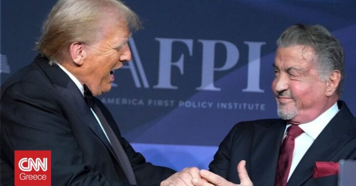 Ο Σιλβέστερ Σταλόνε παρουσίασε τον εκλεγμένο πρόεδρο σε ένα γκαλά στο Mar-a-Lago τον Νοέμβριο, αποκαλώντας τον «δεύτερο Τζορτζ Ουάσινγκτον». Πρωταγωνίστησε πρόσφατα στο δράμα της Paramount+ «Tulsa King» και συνυπογράφει το σενάριο και την παραγωγή της ταινίας δράσης του Τζέισον Στέιθαμ «Working Man».