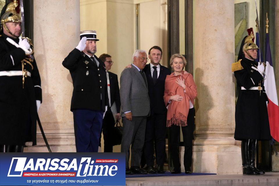 O Μακρόν μαζί με την Φον ντερ Λάιεν και τον Κόστα στο Ελιζέ