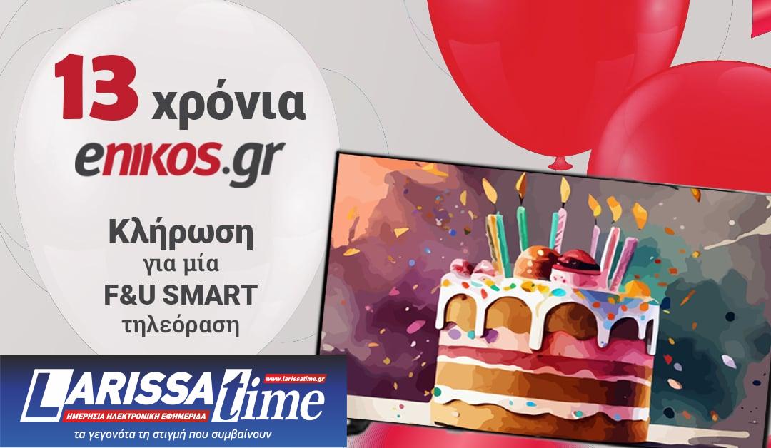Το enikos.gr συμπλήρωσε 13 χρόνια ζωής και κάνει δώρο σε έναν τυχερό αναγνώστη μία μοναδική SMART τηλεόραση F&U 4K ULTRA HD 43 ιντσών. Στην κλήρωση, η οποία πραγματοποιήθηκε την Παρασκευή 14/2 με τη χρήση προγράμματος τυχαίας επιλογής, έλαβαν μέρος όλοι οι αναγνώστες που προχώρησαν σε εγγραφή στο newsletter του enikos.gr.
