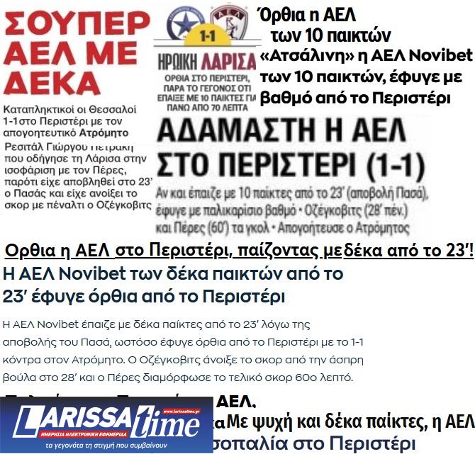 Ο Τύπος της Αθήνας για Ατρόμητος-ΑΕΛ