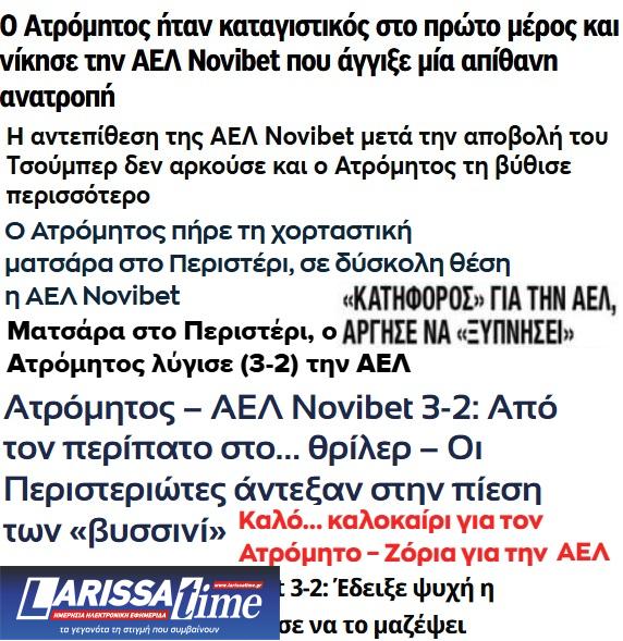 Ο Τύπος της Αθήνας για Ατρόμητος-ΑΕΛ