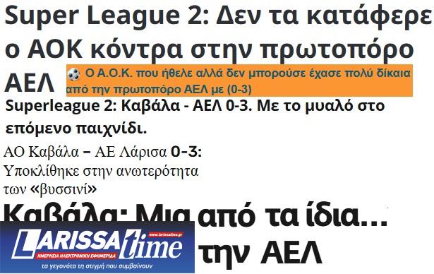 Ο Τύπος της Καβάλας για τη νίκη της ΑΕΛ