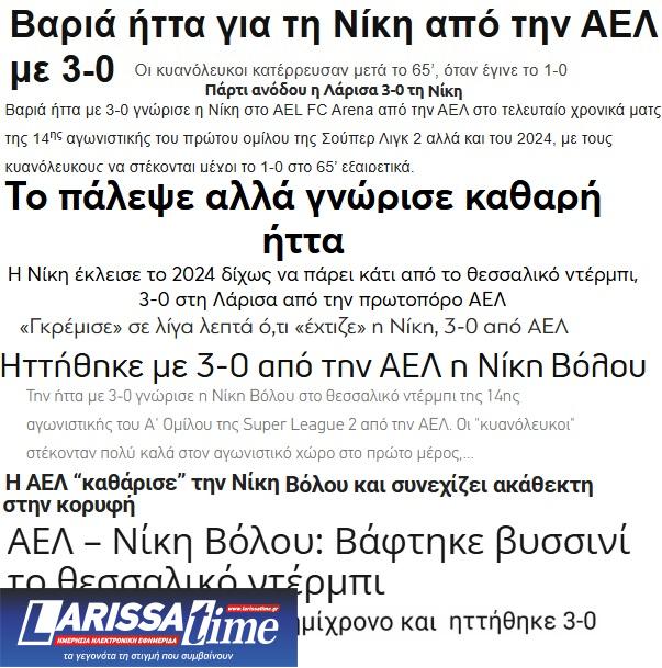 Ο Τύπος της Μαγνησίας για τη νίκη της ΑΕΛ