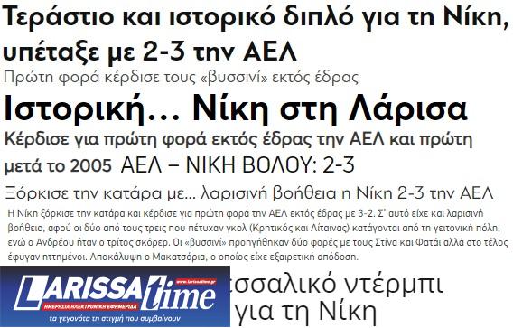 Ο Τύπος της Μαγνησίας για την ήττα της ΑΕΛ