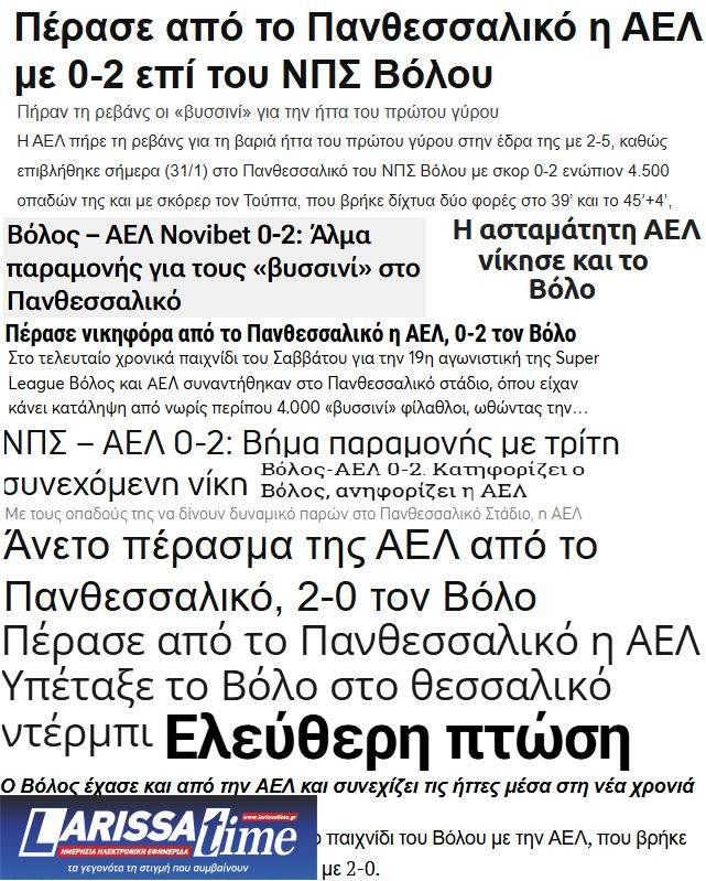 Ο Τύπος της Μαγνησίας για το Βόλος-ΑΕΛ