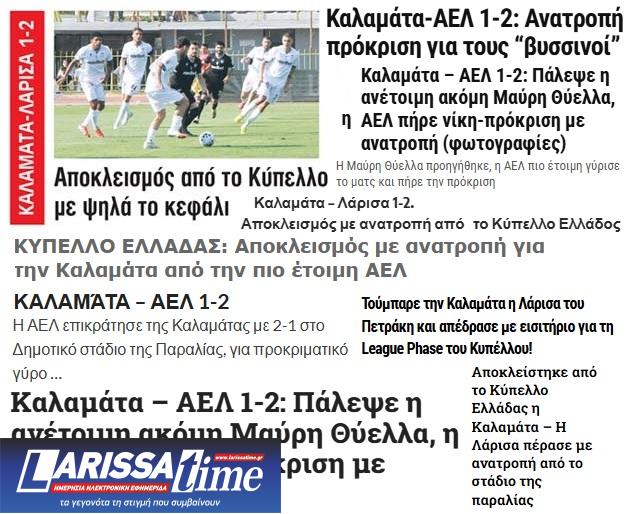 Ο Τύπος της Μεσσηνίας για την πρόκριση της ΑΕΛ