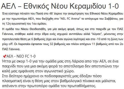 Ο Τύπος της Πιερίας για τη νίκη της ΑΕΛ
