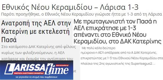 Ο Τύπος της Πιερίας για τη νίκη της ΑΕΛ