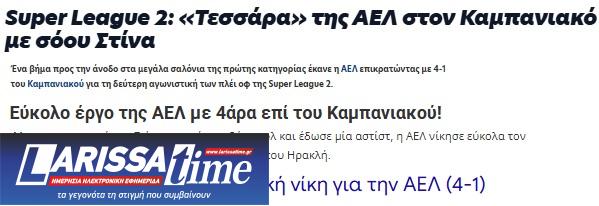 Ο Τύπος της Θεσσαλονίκης για τη νίκη της ΑΕΛ