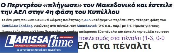 Ο Τύπος της Θεσσαλονίκης για την πρόκριση της ΑΕΛ