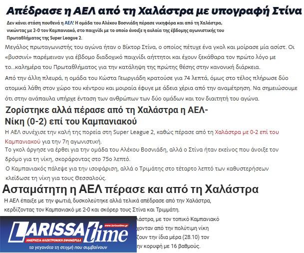 Ο Τύπος της Θεσσαλονίκης για το διπλό της ΑΕΛ