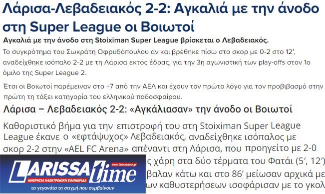 Ο Τύπος της Βοιωτίας για το «Χ» της ΑΕΛ