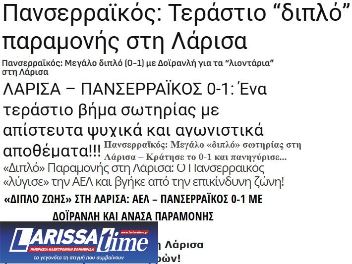 Ο Τύπος των Σερρών για ΑΕΛ-Πανσερραϊκός 0-1