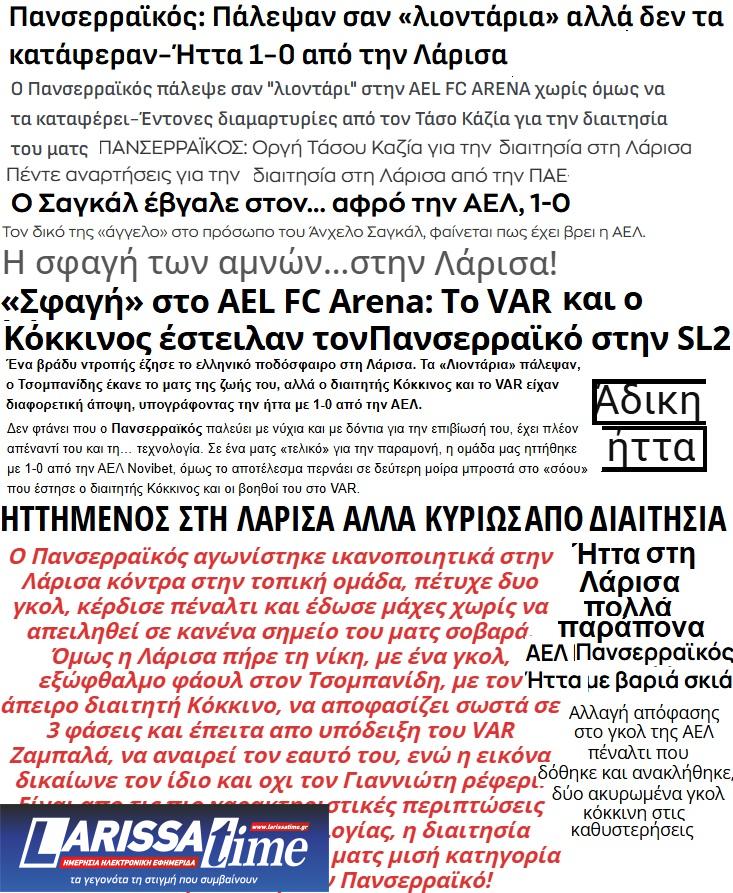 Ο Τύπος των Σερρών για ΑΕΛ-Πανσερραϊκός