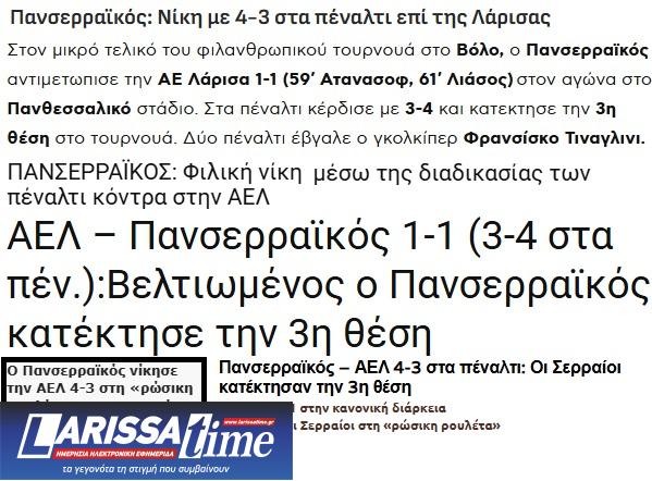 Ο Τύπος των Σερρών για ΑΕΛ-Πανσερραϊκός