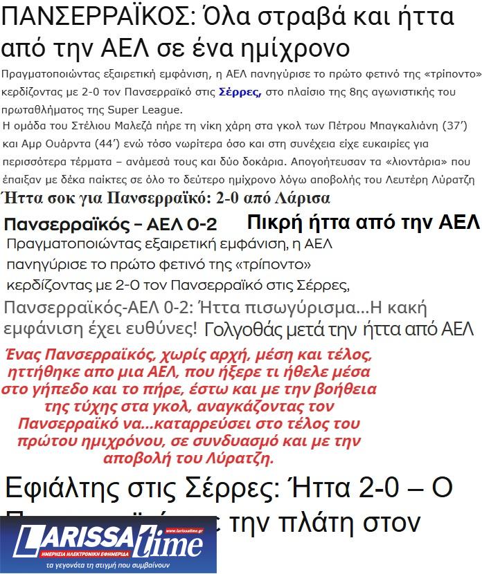 Ο Τύπος των Σερρών για Πανσερραϊκός-ΑΕΛ