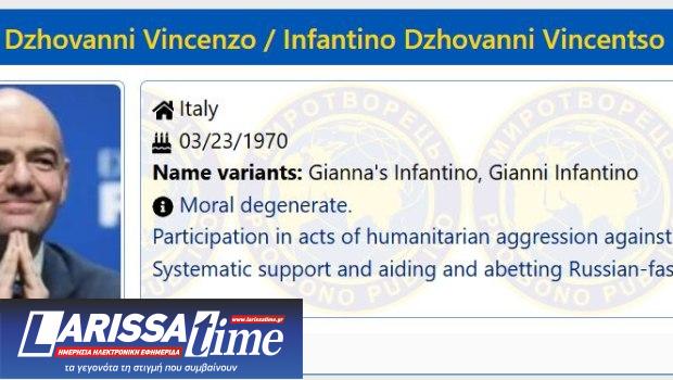 Ο πρόεδρος της FIFA Τζιάνι Ιφαντίνο μπήκε σε μια λίστα συλλήψεων και θανάτου της Ουκρανίας, με την ονομασία «ο Ειρηνοποιός», η οποία επίσημα ανήκει σε μια ΜΚΟ και ανεπίσημα συγκεντρώνει πληροφορίες από τις μυστικές υπηρεσίες και δίνει πληροφορίες σε αυτές. Βάσει των δημοσιευμάτων της σελίδας myrotvorets, έχουν συλληφθεί περίπου 1.000 άτομα τα οποία θεωρήθηκαν ως εχθροί της χώρας.