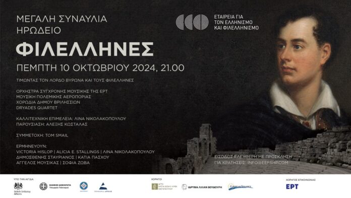 Η Εταιρεία για τον Ελληνισμό και Φιλελληνισμό (ΕΕΦ – www.eefshp.org) και το Μουσείο Φιλελληνισμούστην Αθήνα (www.phmus.org), όπου διαφυλάσσεται η εκτενέστερη διεθνώς ιδιωτική συλλογή τέχνης, προσωπικών αντικειμένων, κειμηλίων και τεκμηρίων που αφορούν στον ποιητή, διοργανώνουν στις 10 Οκτωβρίου 2024 στο Ωδείο Ηρώδου του Αττικού μίαμεγάλη συναυλία βασισμένη σε έργα σπουδαίων Ελλήνων και Φιλελλήνων ποιητών με διεθνή απήχηση.