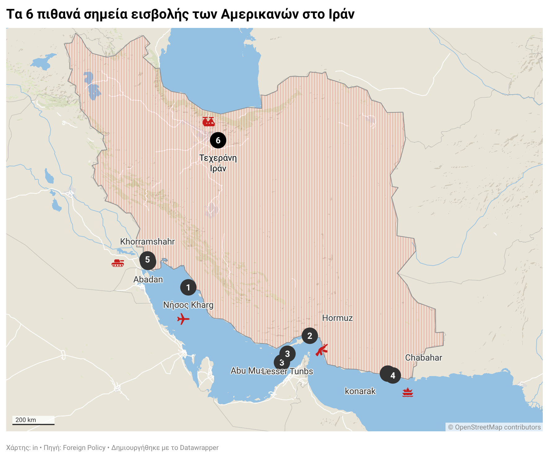 Κοιτάζοντας κανείς τον χάρτη του Ιράν, φαίνεται να προσφέρονται πολλαπλά σημεία εισόδου, από τον Περσικό Κόλπο και τον Κόλπο του Ομάν έως τις δυτικές παραμεθόριες περιοχές.