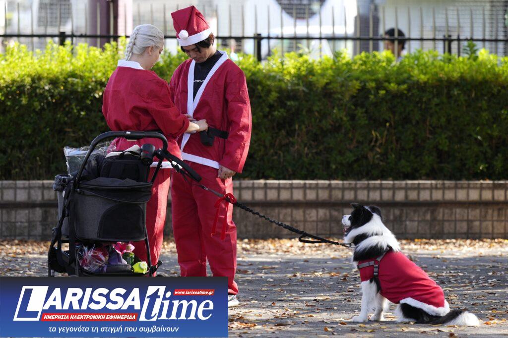 Άνθρωποι ντυμένοι με στολή Άγιου Βασίλη προετοιμάζονται πριν συμμετάσχουν σε παρέλαση κατά τη διάρκεια φιλανθρωπικής εκδήλωσης στην περιοχή Σιμπούγια του Τόκιο, την Κυριακή 17 Νοεμβρίου 2024. (AP Photo/Eugene Hoshiko)