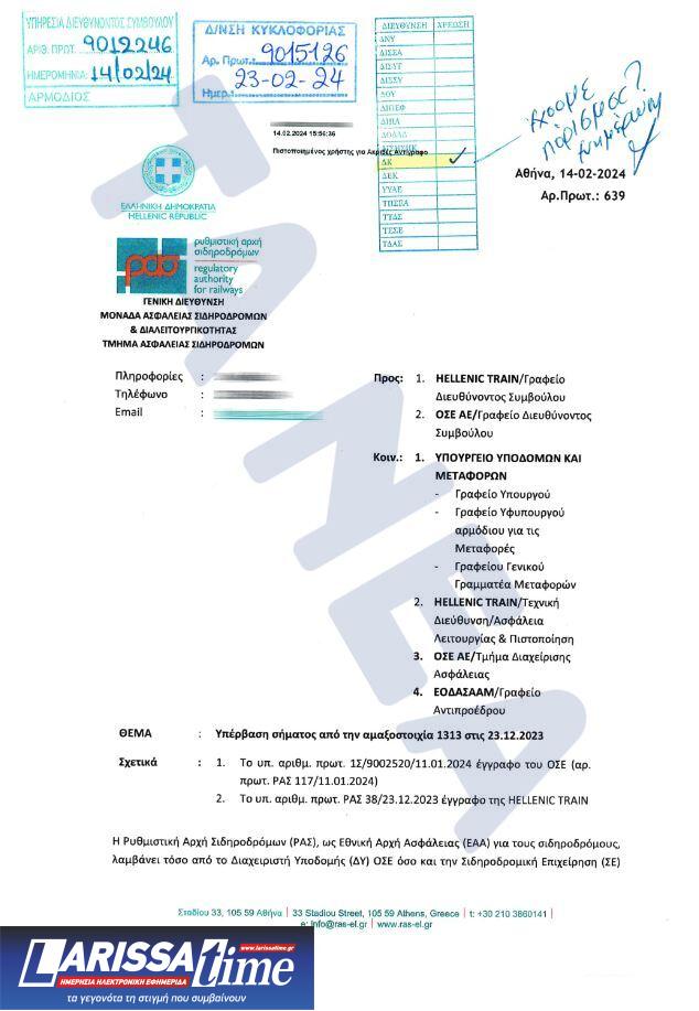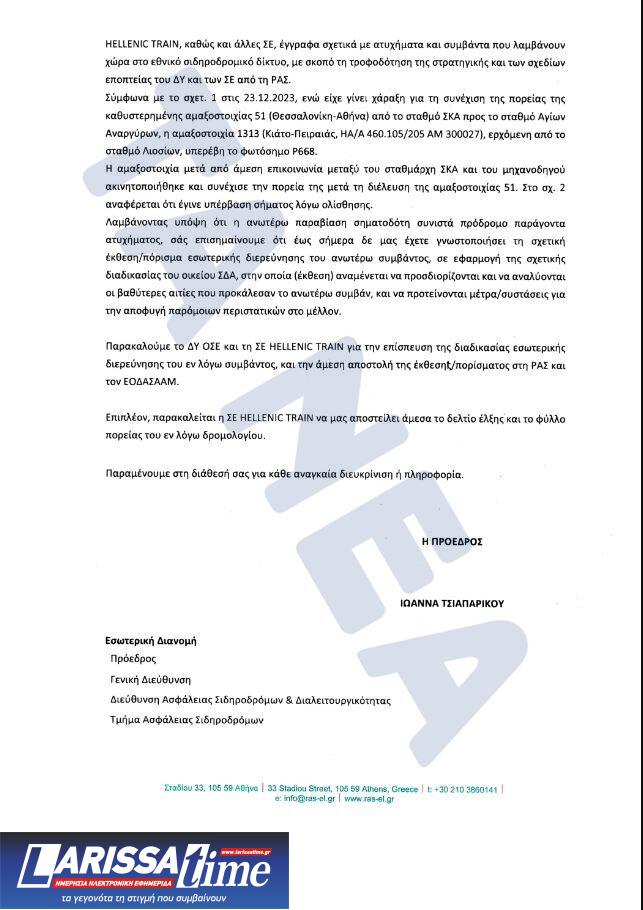 Το νέο συμβάν θέτει εκ νέου σε «αμφισβήτηση» την εμπέδωση της ασφαλούς λειτουργίας όλων των εμπλεκομένων στις σιδηροδρομικές μετακινήσεις και απασχολεί ξανά τις αρμόδιες υπηρεσίες, έναν χρόνο μετά την τραγωδία των Τεμπών.