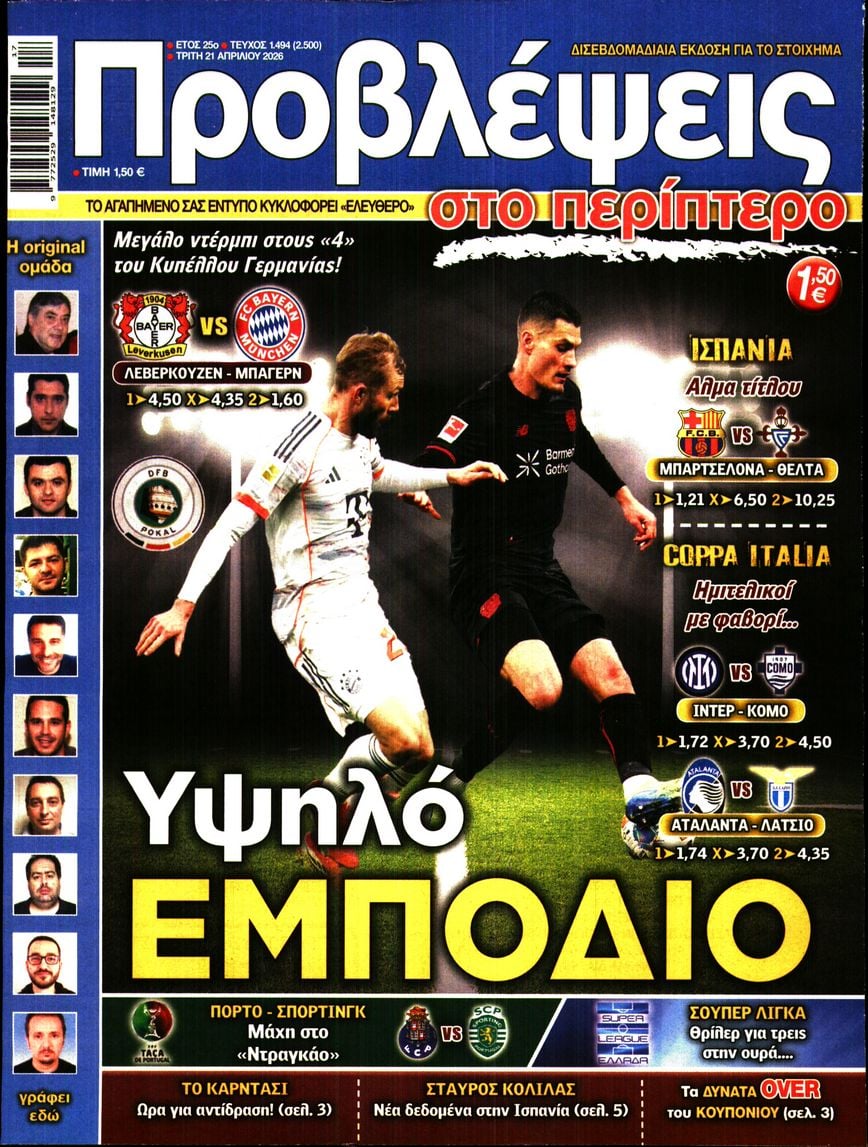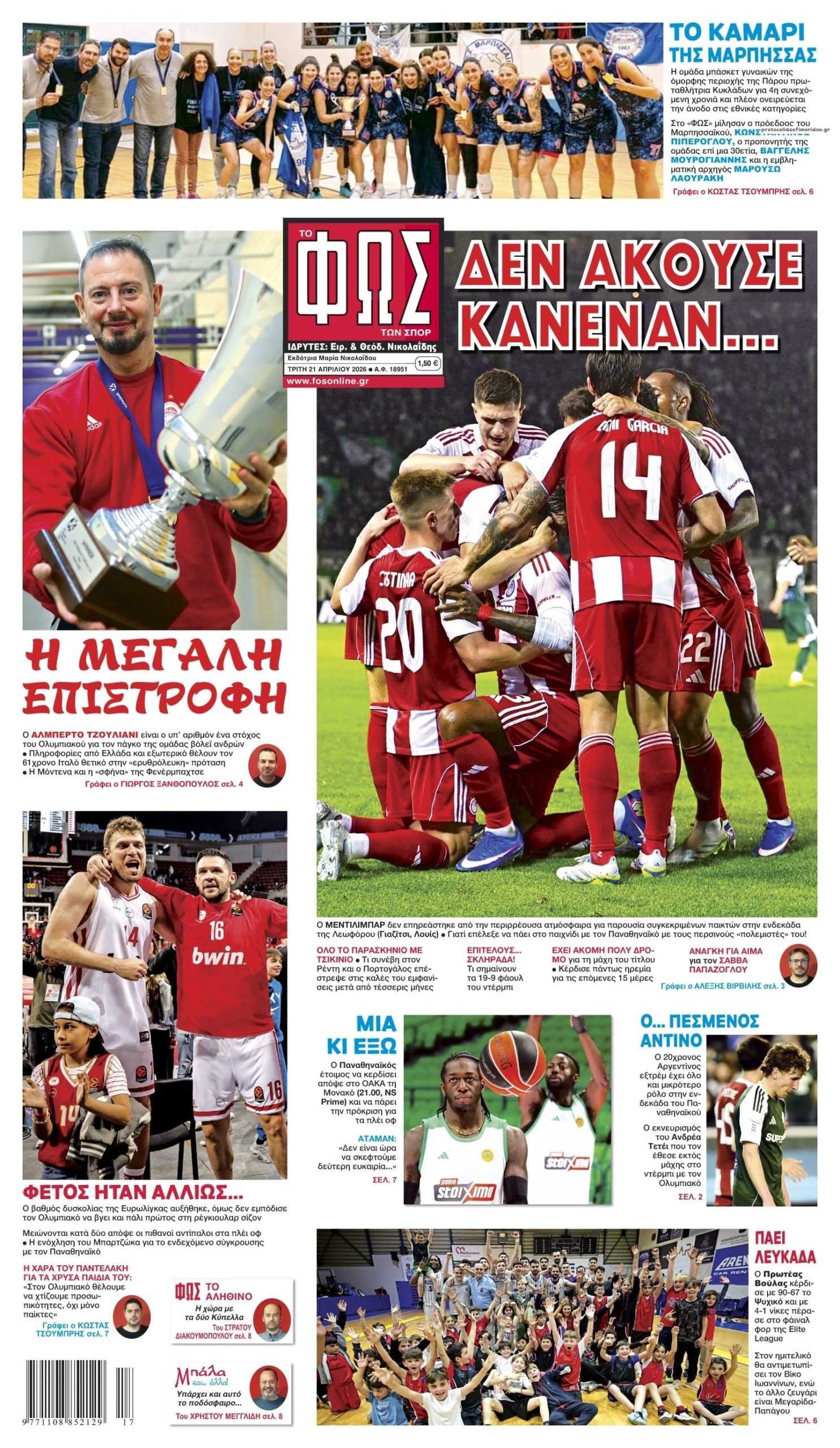 Διαβάστε τα πρωτοσέλιδα από τις αθλητικές εφημερίδες, σήμερα 21/4/2026.