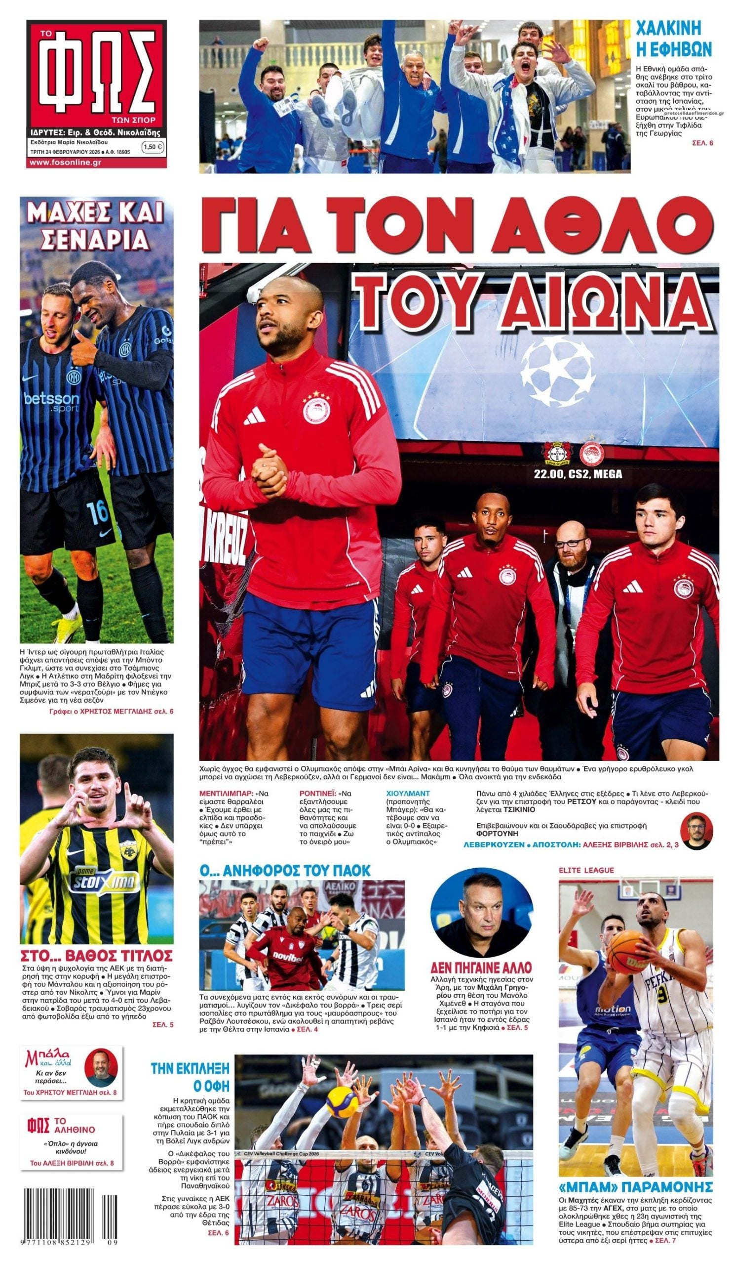 Οι αθλητικές εφημερίδες 24/2/2026