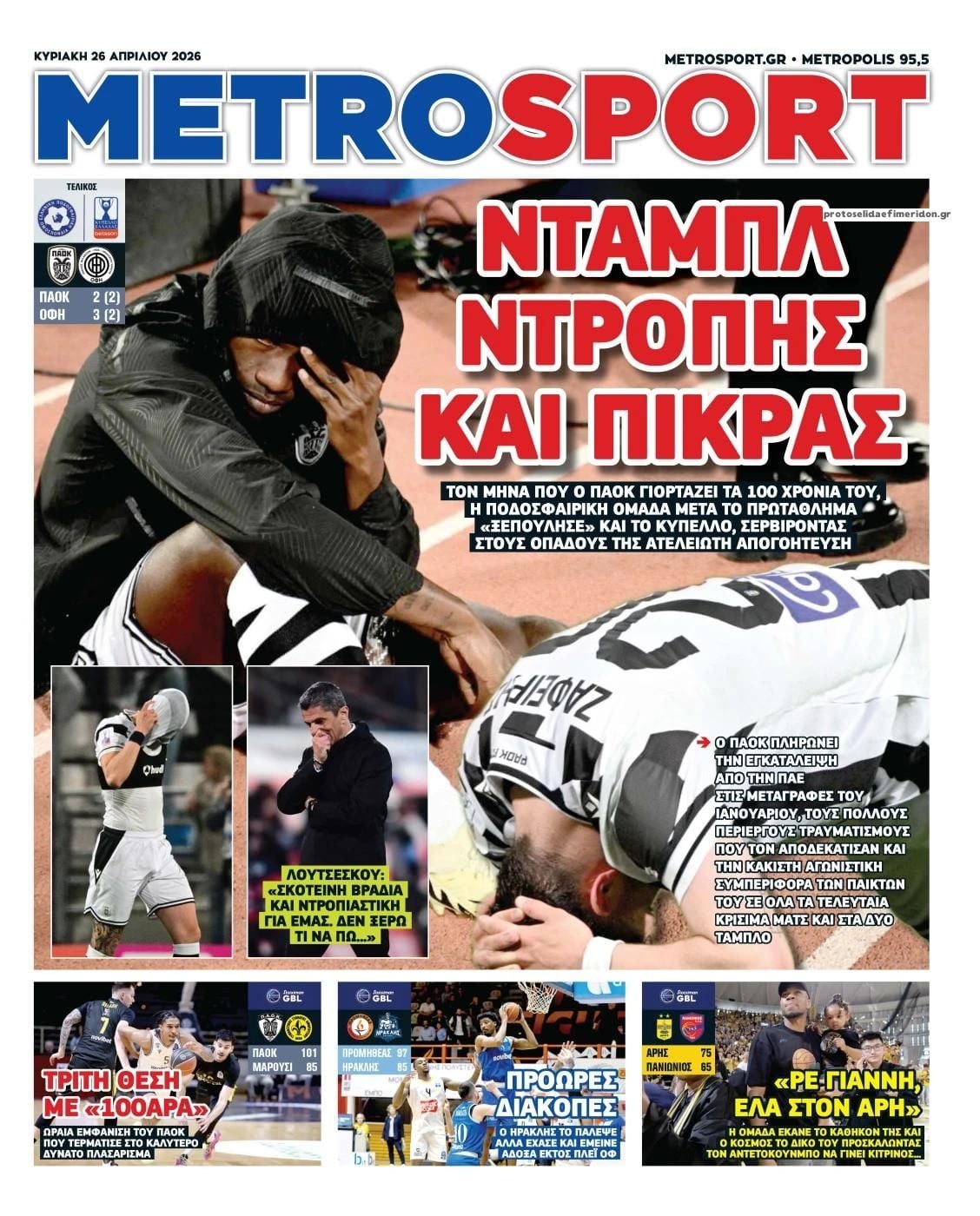 Διαβάστε τα πρωτοσέλιδα από τις αθλητικές εφημερίδες, σήμερα 26/4/2026.