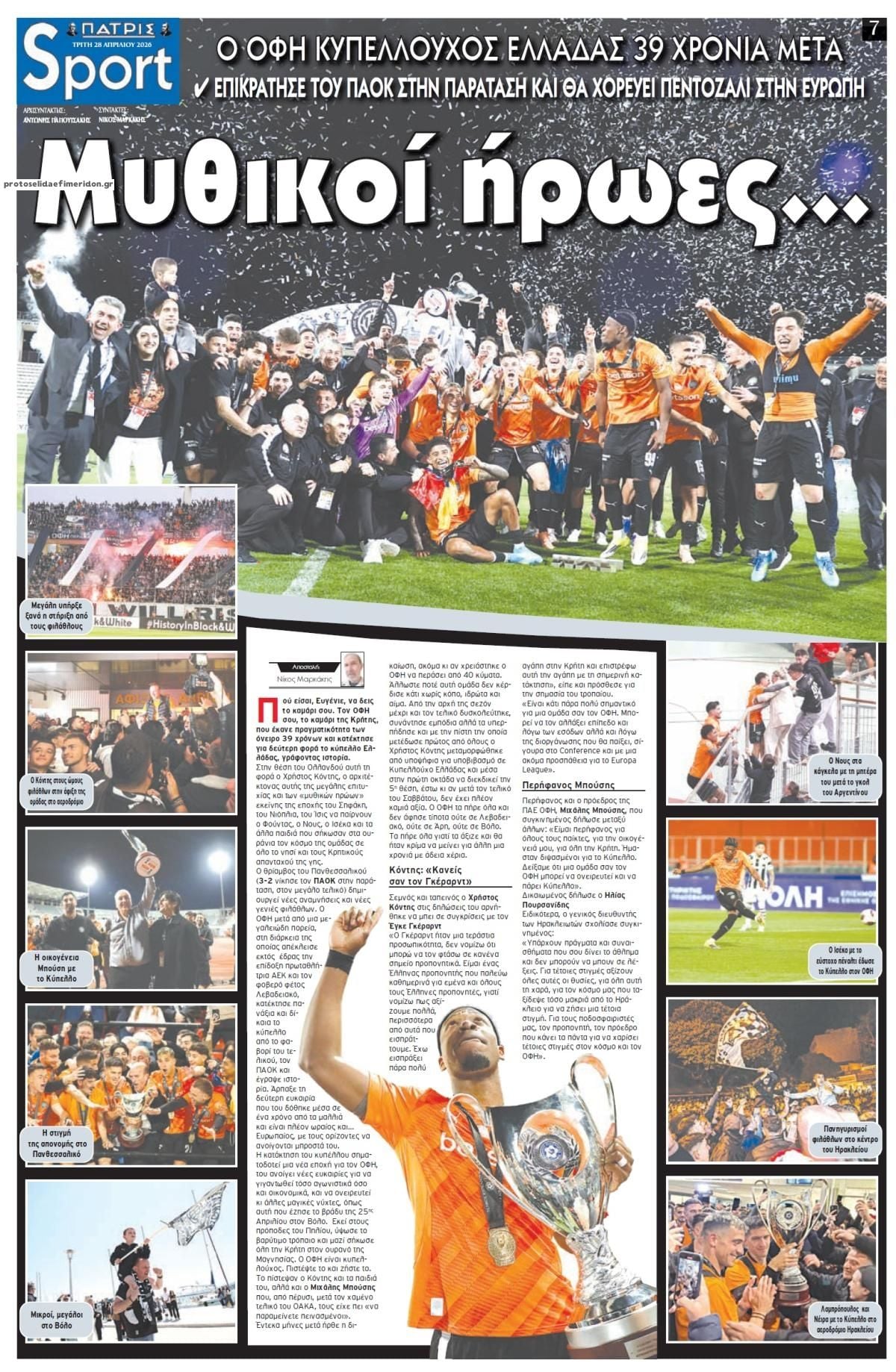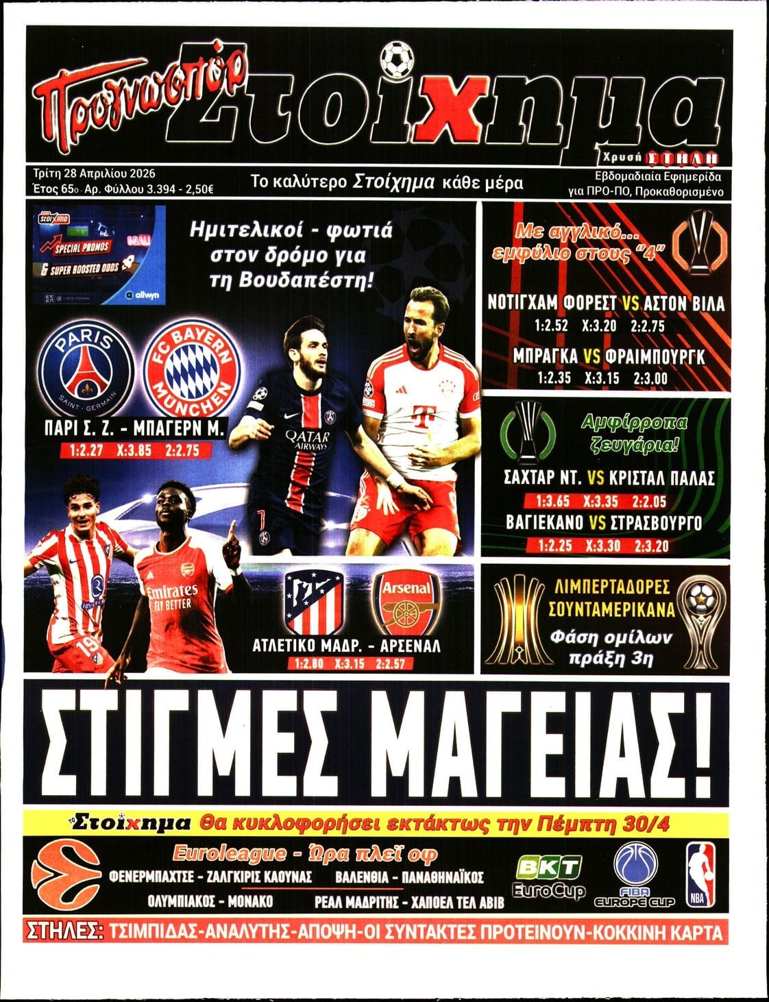 Διαβάστε τα πρωτοσέλιδα από τις αθλητικές εφημερίδες, σήμερα 28/4/2026.