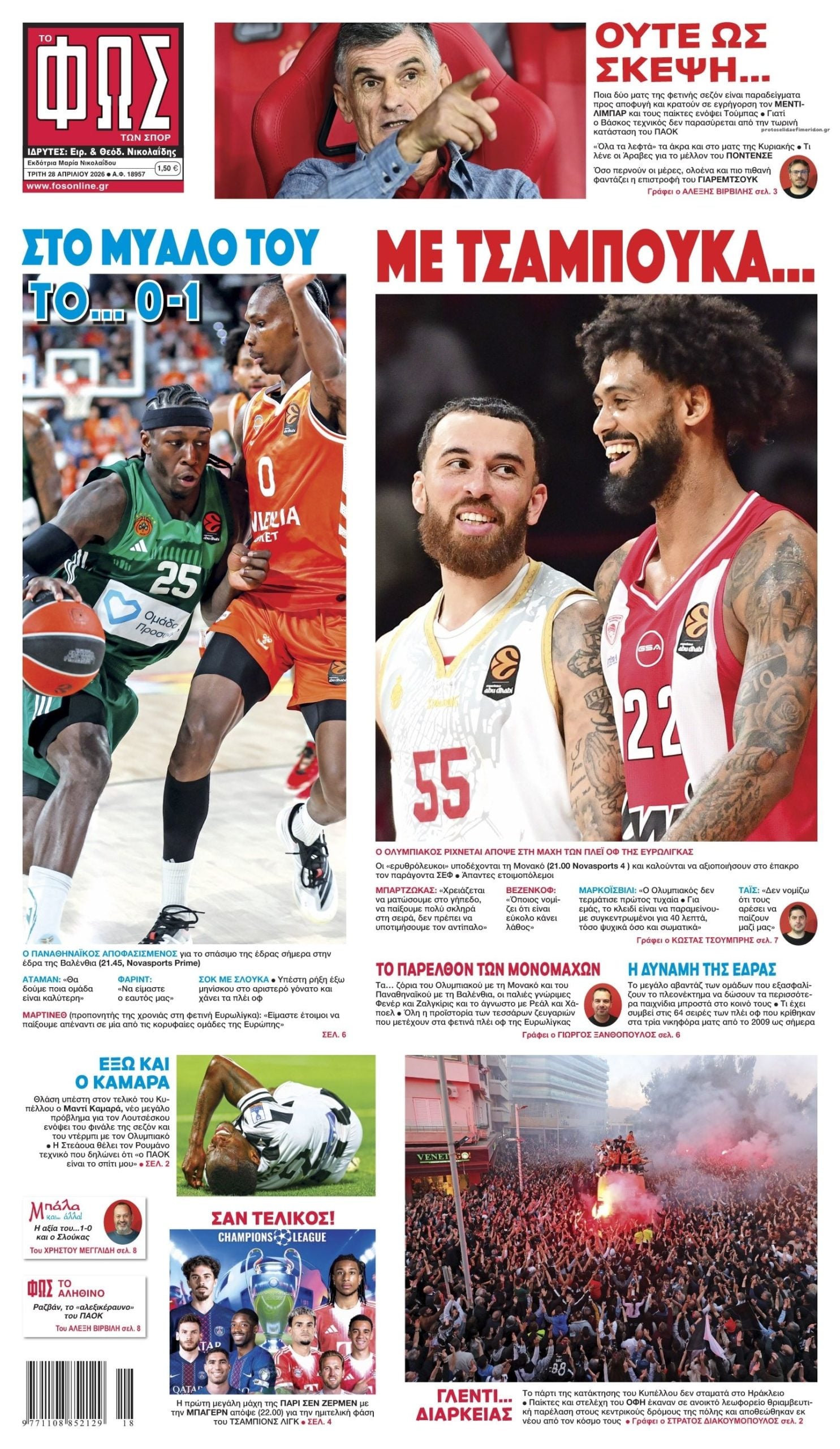 Οι αθλητικές εφημερίδες 28/4/2026