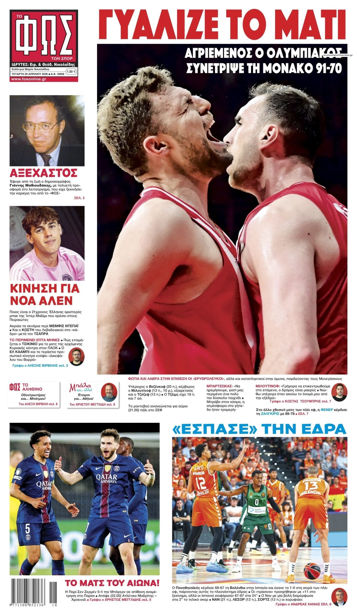 Διαβάστε τα πρωτοσέλιδα από τις αθλητικές εφημερίδες, σήμερα 29/4/2026.