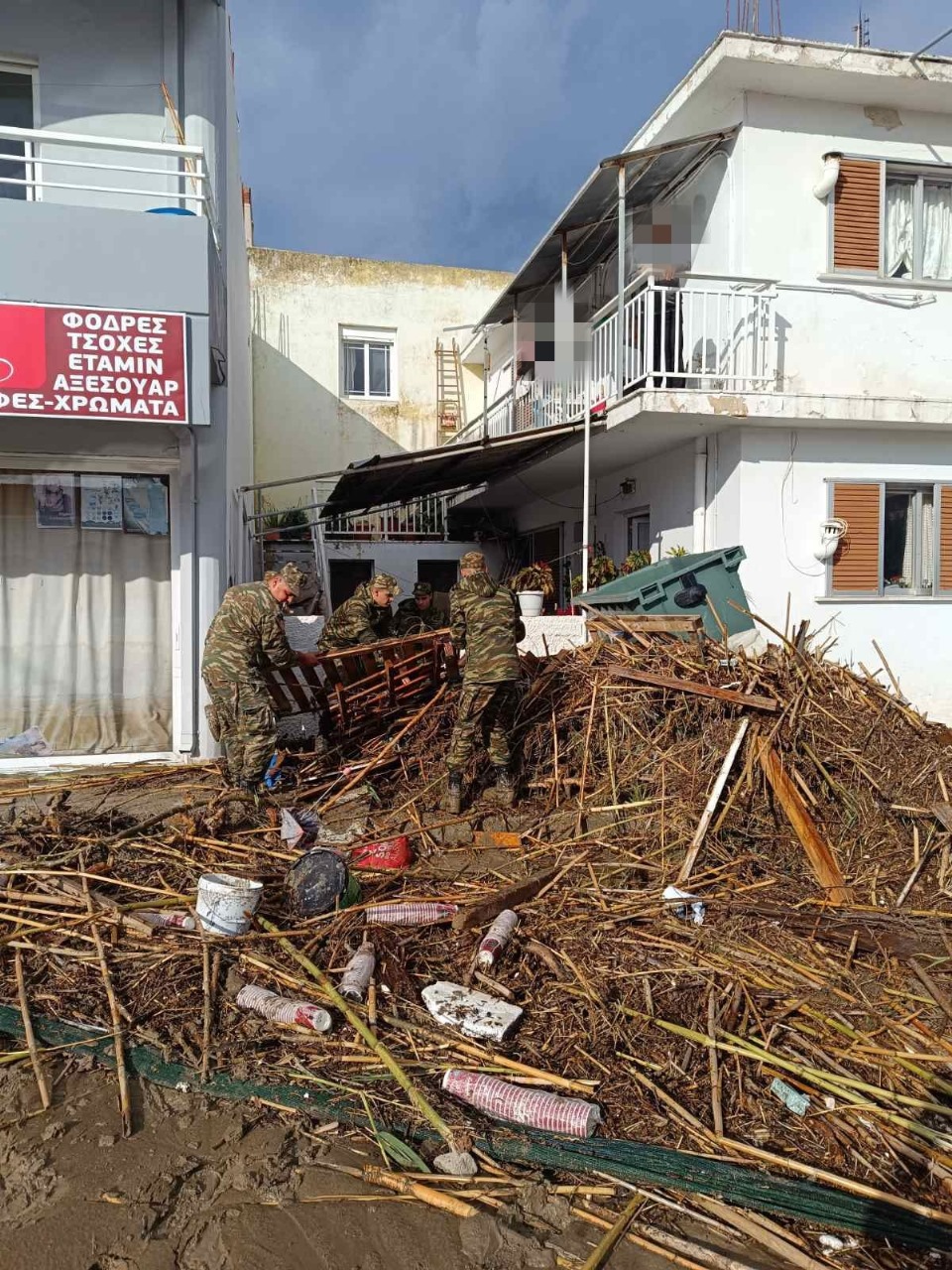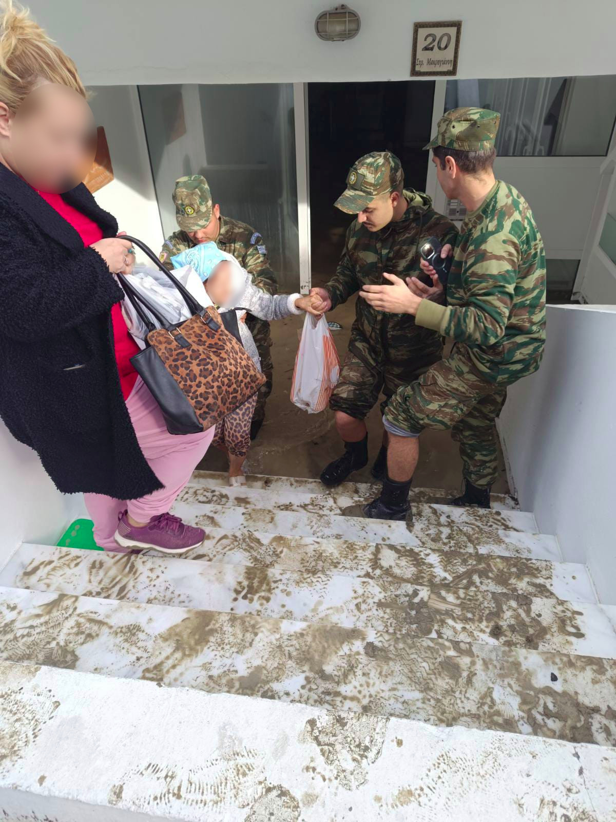Οι Ελληνικές Ένοπλες Δυνάμεις επιχειρούν στις πληγείσες περιοχές για τον απεγκλωβισμό πολιτών, φροντίζοντας παράλληλα για τη μεταφορά τους σε ασφαλή χώρο. Επιπλέον, ενέργειες γίνονται για την απομάκρυνση φερτών υλικών και τη διάνοιξη οδών όμβριων υδάτων προς τη θάλασσα, αποκαθιστώντας τη συγκοινωνία και την πρόσβαση για παροχή βοήθειας, συμβάλλοντας έτσι αποτελεσματικά και στην αποκατάσταση των ζημιών.