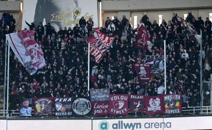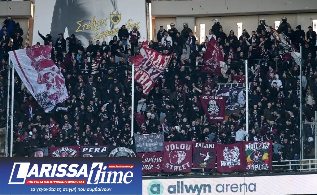 Βροντερό «παρών» των φίλων της ΑΕΛ στη Νέα Φιλαδέλφεια. Οι φίλαθλοι της ΑΕΛ βρέθηκαν στη θύρα 48 του γηπέδου Αγιά Σοφιά – Allwyn Arena, για να παρακολουθήσουν την εκτός έδρας αναμέτρηση με την ΑΕΛ, στο πλαίσιο της 24ης αγωνιστικής για το πρωτάθλημα της Superleague. Δείτε πλάνα από την εξέδρα των οπαδών της ΑΕΛ.