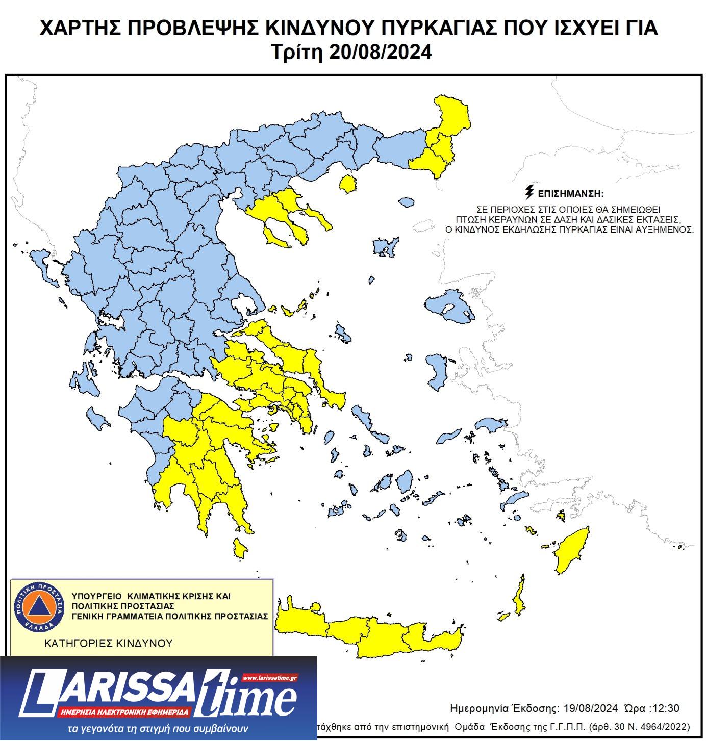 ⚠️ Χάρτης Πρόβλεψης Κινδύνου 🔥 για αύριο Τρίτη 20/8: