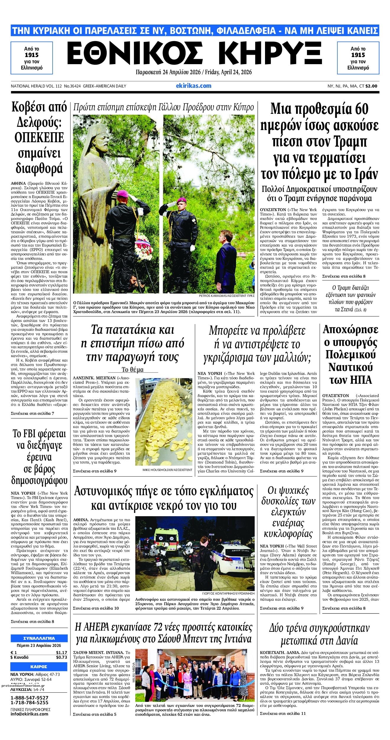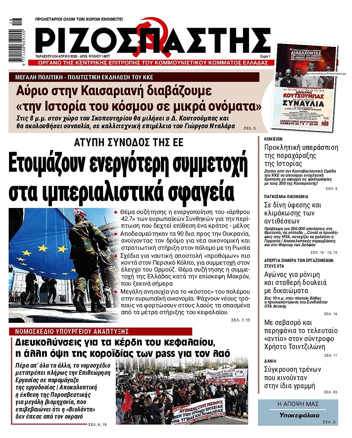 Διαβάστε τα πρωτοσέλιδα από τις πολιτικές εφημερίδες, σήμερα 24/4/2026.